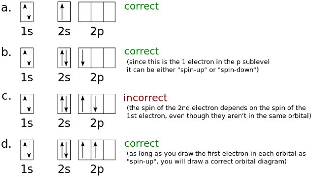 When in one orbit, two electrons enter, meaning each spins in the opposite direction.