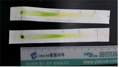 The reason for this result was different from each group by comparing the travel distance and development rate with other groups. First, acetone and methanol were used to obtain a lot of juice to obtain spinach juice. It is presumed that the result of development was different due to the different separation capacity due to methanol.