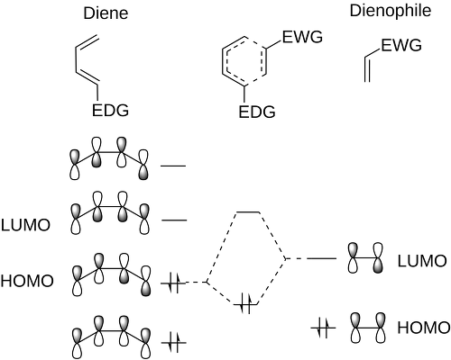 You only need to know LUMO and HOMO, ignoring Diene, EDG, etc.