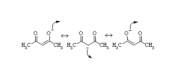 2 In 4-pentanedione, it has an unshared electron pair and a negative formal charge next to the left and right C=O double bonds.